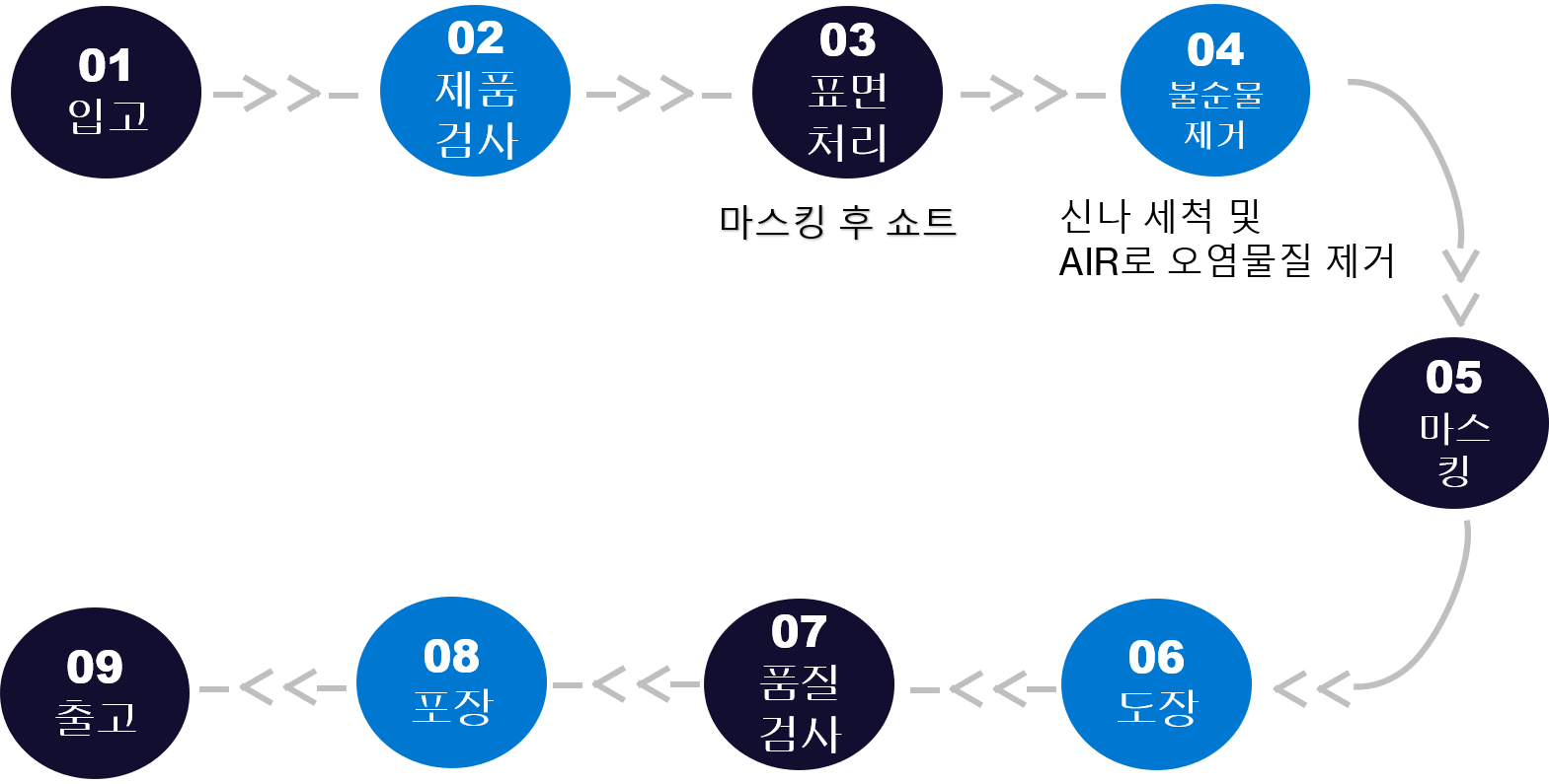 Business 분체도장 Service 1 분체도장이란? 분체도장은 분말형태인 도료를 스프레이건을 이용하여 코팅하는 도장방식으로 정전방식, 유동침적방식, 정전유동침적 방식 등이 있습니다. 일반적으로 분체도장은 정전방식으로 전기를 사용한 방법으로 플러스극으로 접지 후 마이너스극으로 세팅한 분체도료를 스프레이로 분사해 부착시키는 방법입니다. Service 2 분체도장 생산공정도 고객의 신뢰를 소중히 여기는 기업 분체 · 액체 전문 도장기업 (주)세창산업 바로 문의하기