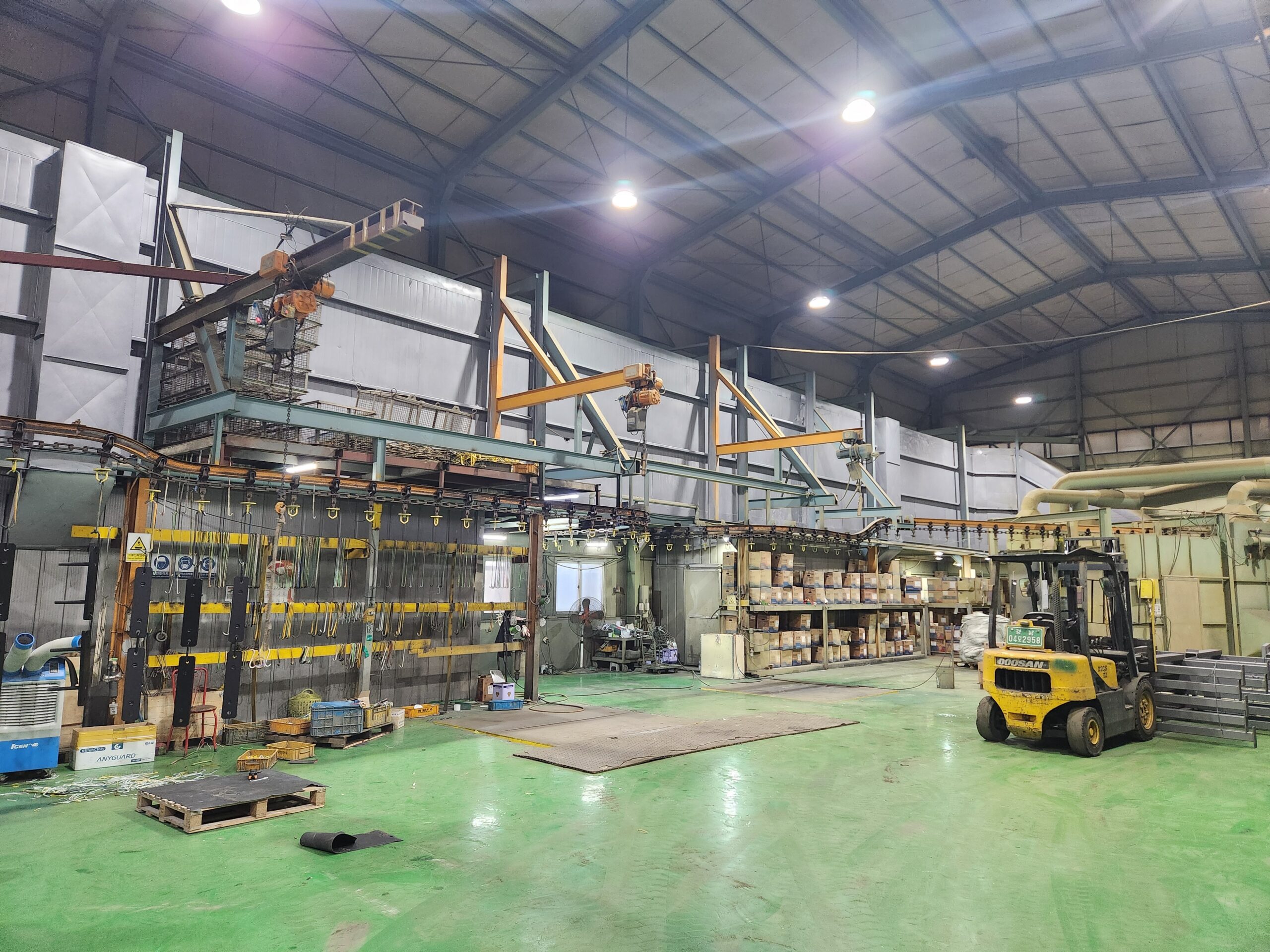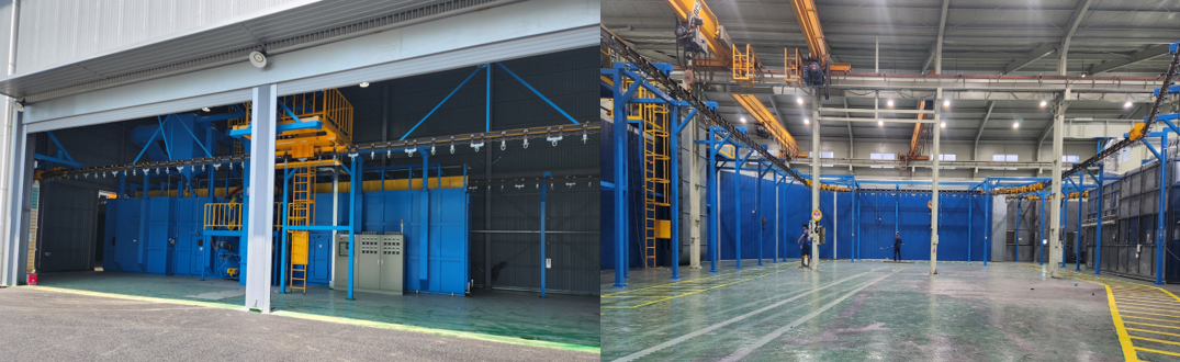 Business 주요장비 SERVICE 01 전처리기계 (자동쇼트/수동쇼트)(SHOT BLAST) SERVICE 02 컨베이어 라인 (CONVEYOR LINE) SERVICE 03 도장부스 / 건조로 PAINT SHOP / DRY ROOM SERVICE 04 자동쇼트+컨베이어 라인